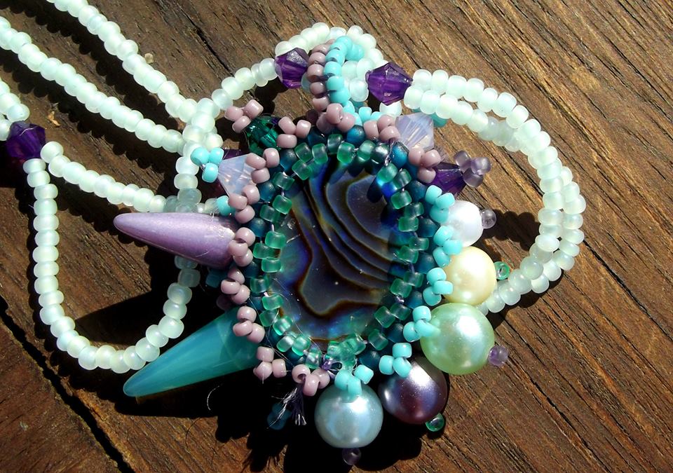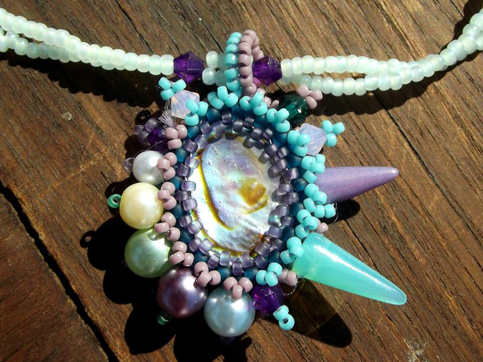 Kombinace barev a korálků na přívěšku se mi moc líbí, nesedí mi zavěšení na rokajlu, ale rozhodující je, jak to vypadá na krku.