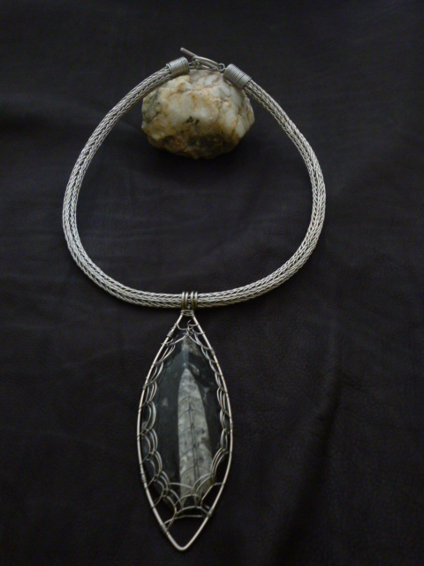 Náhrdelník je pletený technikou viking knite, s 0,6mm nerezového drátu.
