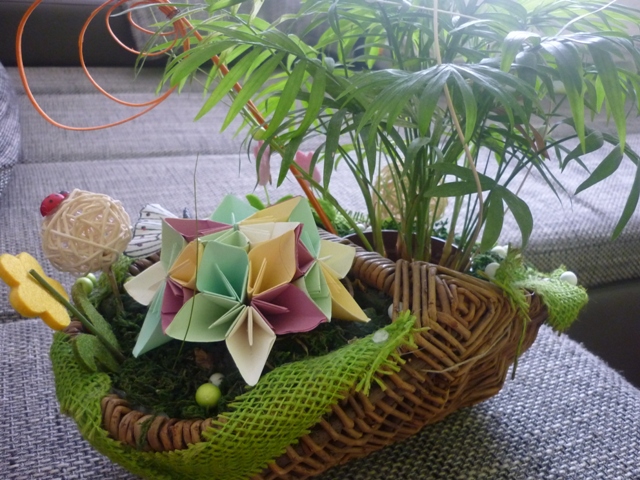 Mamina si koupila ozdobný košíček, ale uschla ji jedna kytka, tak jsme se rozhodli místo ní udělat papírovou a takhle to dopadlo :