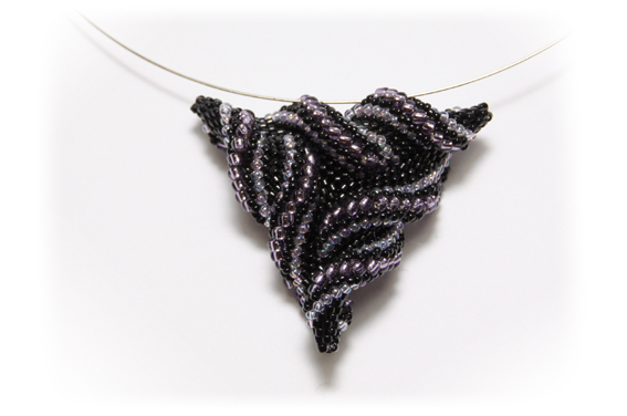 Na stránce http://biser.info/node/209321 je návod, mají to být dva trojúhelníky sešité ndebele. Nejsem tak zručná jako zde píšící korálkářky, ale podle mně čím rozdílnější jsou použité korálky, tím víc se trojúhelník kroutí.
