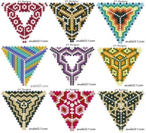 chtěla bych se zeptat stále si nevím rady jestli tyto trojúhelníky se šijí dohromady nebo po částech a odkud mám začít kdybych je šila po částech a jak udělám že každá řada má o 2 korálky míň?