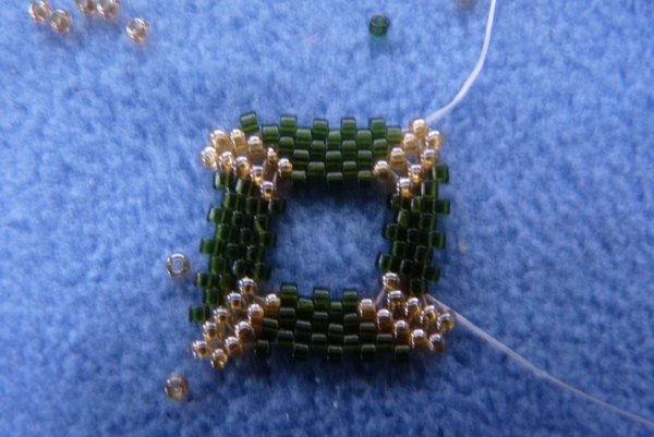 a ani návod nepomohl? začíná se třemi korálky uprostřed, které se spojí do kroužku a pak se přidávají buď dvojice korálků (do rohu) nebo jednotlivé korálky (na hrany)