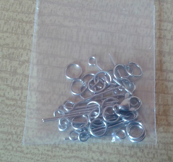 Chirurgická ocel - ketlovací jehly, spojovací kolečka, zapínání.