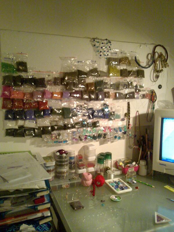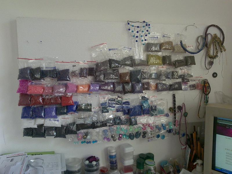 Jinak mám takovou úchylku, že musím na korálky pořád koukat a v hlavě s emi honí barevné kombinace a co z nich. Proto je mám takhle vystavené pro inspiraci.