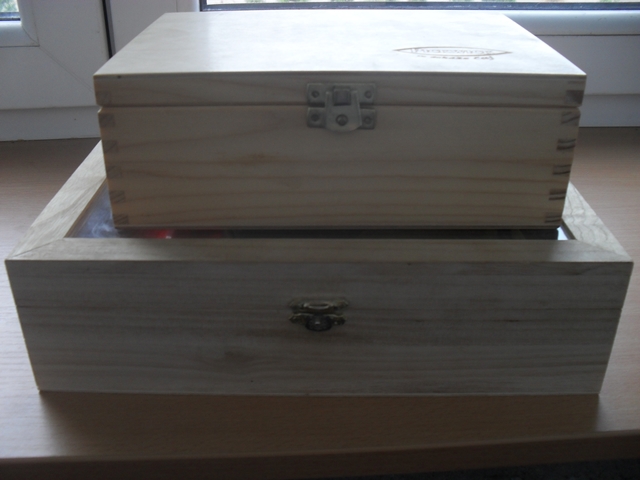 Pokračujeme záběrem dolů, na využitelnou část stolu : v plastových miskách zásoby japonců, roztříděné podle velikosti a rozdělené na skladovatelná množství podle barev. Zdá se, že tato "barikáda" má zabránit návštěvníkovi v nahlédnutí do autorovy třinácté komnaty, ukryté v tajemné skříňce...že by